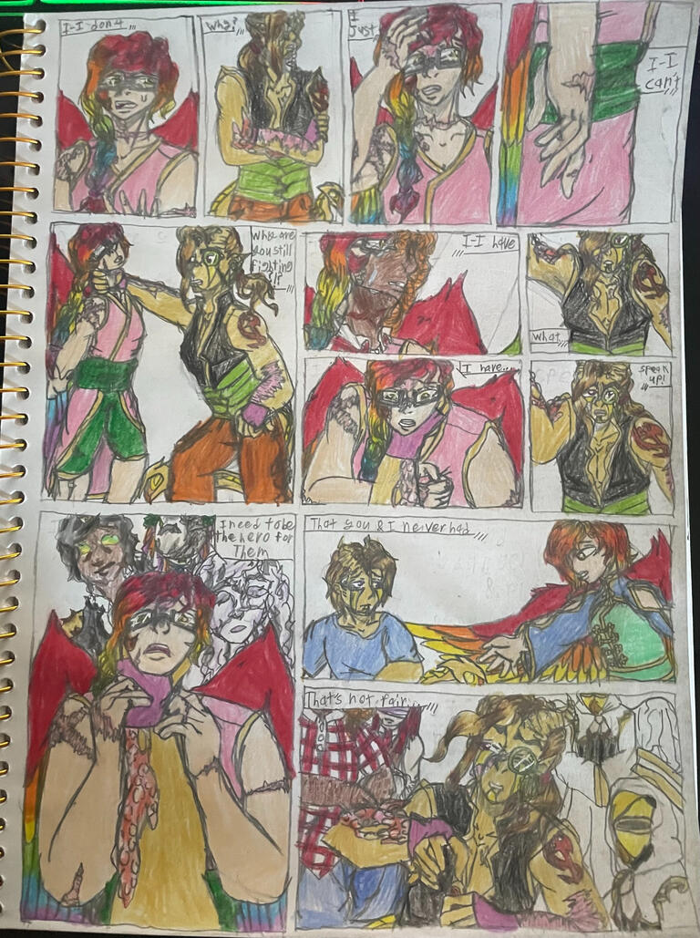 -Some hate Topics (One comic was for a 1980s setting and we all made the characters LGBTQIA+)If any of these are you, nows your cue to look away (Idk How to spoiler images for viewer Discretion.) Be Mindful as this list may change as I mature or the content I make does. Much of these are fake Scenarios from 3-4 D&D Horror Campaigns in which I am a player of. Be mindful!